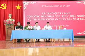 Năm 2026, xã An Viễn có có 41 thanh niên được nhận Quyết định gọi công dân nhập ngũ, thực hiện nghĩa vụ tham gia công an nhân dân. Phát biểu tại buổi lễ, thay mặt Hội đồng nghĩa vụ quân sự xã, Ông Nguyễn Quốc Tần - Phó Bí thư Đảng ủy, Chủ tịch UBND, Chủ tịch HĐNV.QS xã đã biểu dương cấp ủy Đảng, chính quyền, các ban ngành đoàn thể xã tích cực vận động tuyên truyền trong tuyển chọn, gọi công dân nhập ngũ, thực hiện nghĩa vụ tham gia công an nhân dân năm 2026. Đặc biệt, biểu dương và khen ngợi các gia đình có thanh niên đã chấp hành tốt Luật Nghĩa vụ quân sự sẵn sàng lên đường làm nhiệm vụ bảo vệ Tổ quốc. Đồng thời, đồng chí cũng nhấn mạnh; BCHQS xã, các thành viên HĐNVQS xã, Trưởng các ấp phải thực hiện tốt việc quản lý quân số của mình trước ngày giao quân. Tổ chức thăm hỏi, động viên thanh niên và các gia đình thanh niên cả về tinh thần lẫn vật chất.